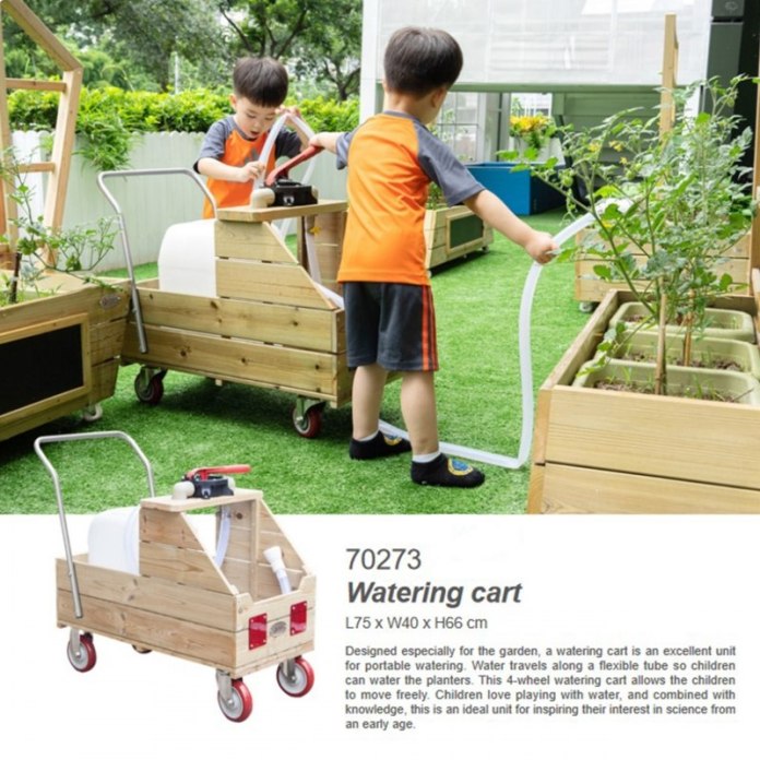 CLASSIC WORLD EDU Drewniany Wózek na Wodę do Podlewania + Wąż