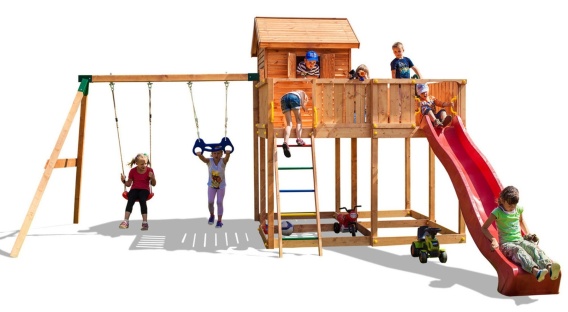 Plac zabaw składa się z drewnianego domku z daszkiem, 2 huśtawek, zjeżdżalni, lunety, koła sterowegooraz drabinki metalowej, co daje dzieciom miejsce i możliwości do wielogodzinnej zabawy na świeżym powietrzu. Ważnym elementem tego placu zabaw jest drewniany daszek, który zapewni dzieciom ochronę przed słońcem i niespodziewanym deszczem. Zestaw pomieści 13 dzieci jednocześnie. Składa się z wielu elementów do zabawy, dzięki czemu dzieci nie będą się nudziły.