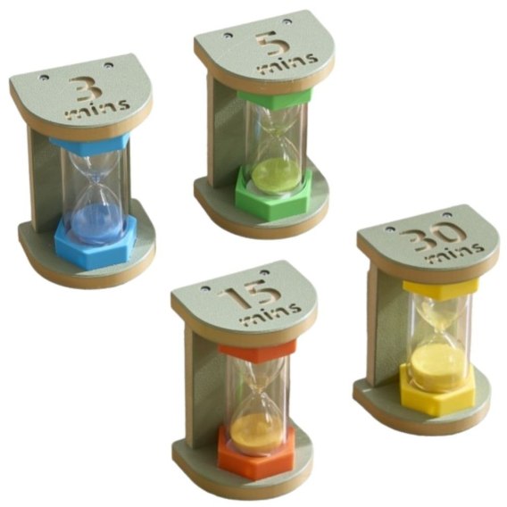 - Każdy czas to inny, żywy kolor, co ułatwia dziecku szybkie rozpoznanie odpowiedniego timera.