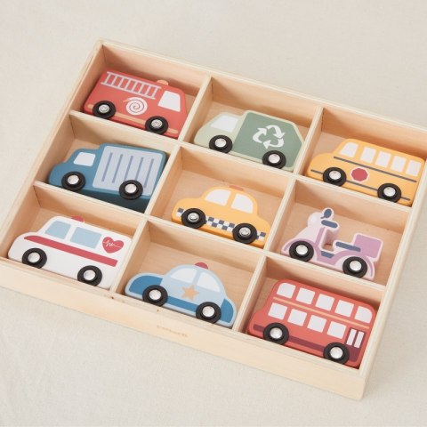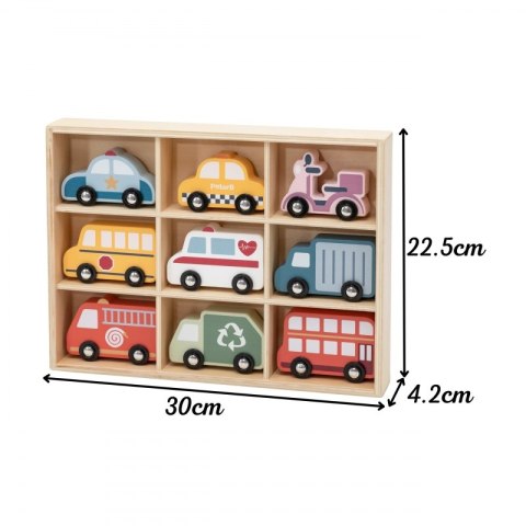 VIGA Drewniany Zestaw Kolorowych Pojazdów Miejskich 9szt.