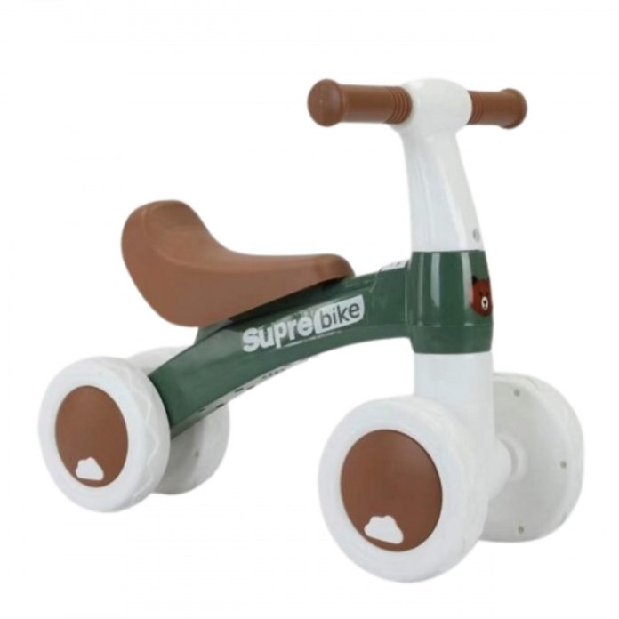 Rowerek posiada cztery szerokie, ciche koła, które nie wymagają pompowania, amortyzują wstrząsy i zapewniają doskonałą przyczepność oraz odporność na ścieranie — czyni go to idealnym do jazdy po każdej nawierzchni. Prosta, stylowa konstrukcja nie posiada żadnych ostrych krawędzi, a miękkie elementy dbają o komfort użytkowania nawet podczas długich zabaw.